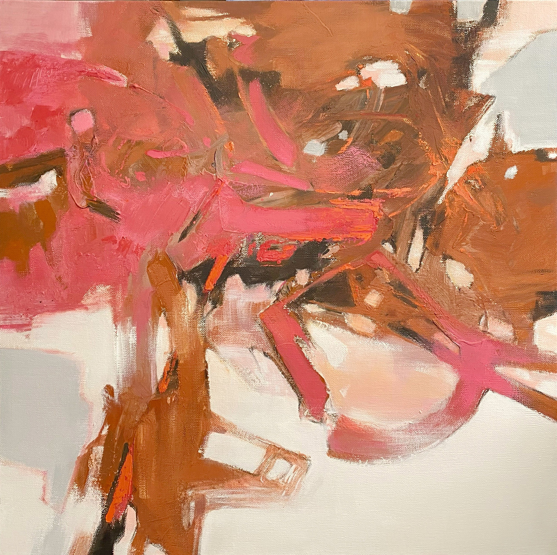Gam màu nâu đất và hồng đỏ giữ vai trò chủ đạo, tạo cảm giác thô mộc, bản năng và hoang dã. Nâu gợi đến đất mẹ – chất liệu khởi sinh, trong khi hồng và đỏ không chỉ là nhịp tim sự sống, mà còn là ngọn lửa hừng hực khai mở. Sự va đập giữa hai tông màu tạo thành những “dòng chảy” đầy chuyển động, như dung nham phun trào, như vết nứt đang sản sinh ra những hình hài đầu tiên của sự sống.